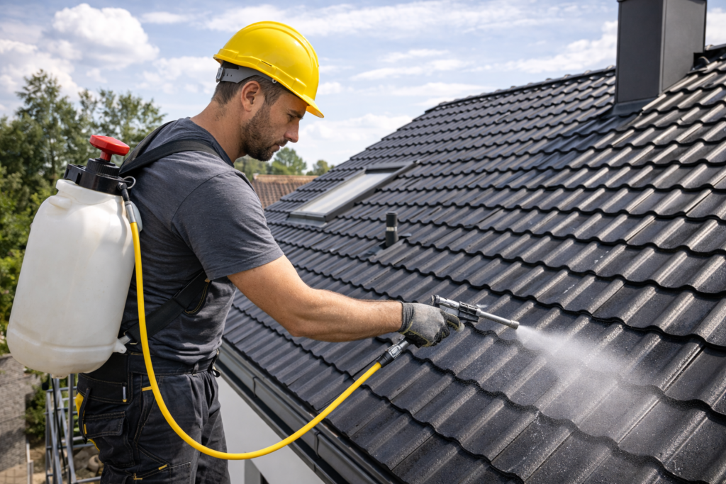 Wir reinigen Dächer aus Betonziegeln, Tonziegeln und Schiefer gründlich und materialschonend. Dabei entfernen wir Moos, Algen, Flechten und weitere Ablagerungen, um die Dachfläche optisch aufzuwerten und langfristig zu erhalten.